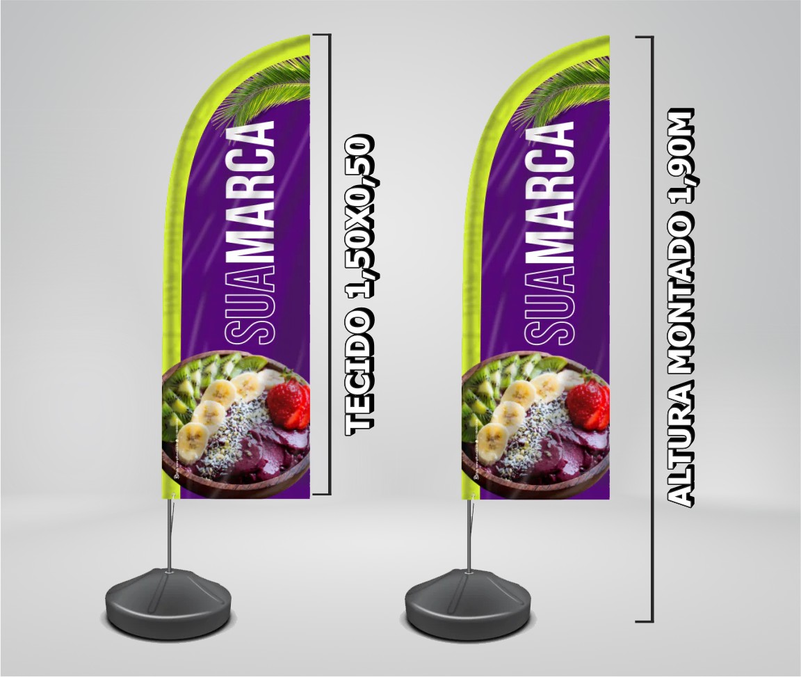 TAMANHO DO WIND BANNER MONTADO APROXIMADAMENTE: 190cm de Altura