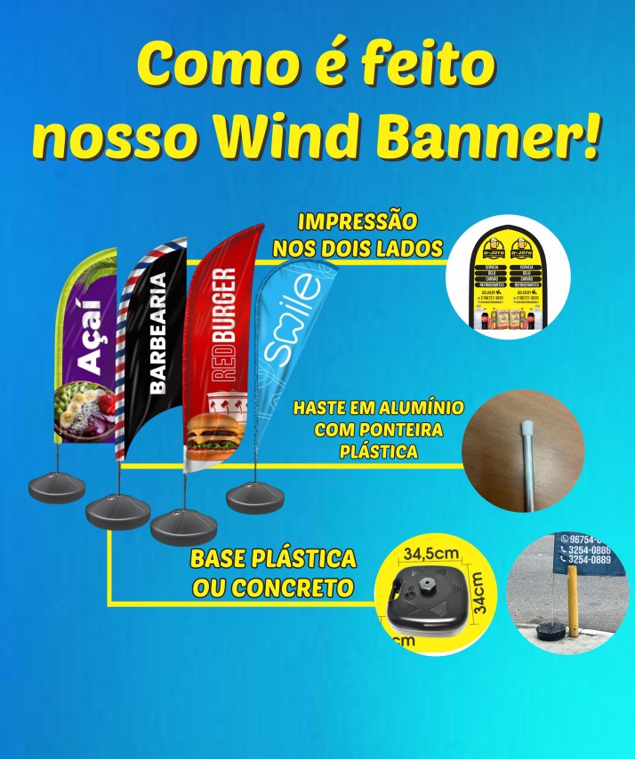 Wind banner completo(Base de Plástico + Tecido Dupla face + haste em alumímio)